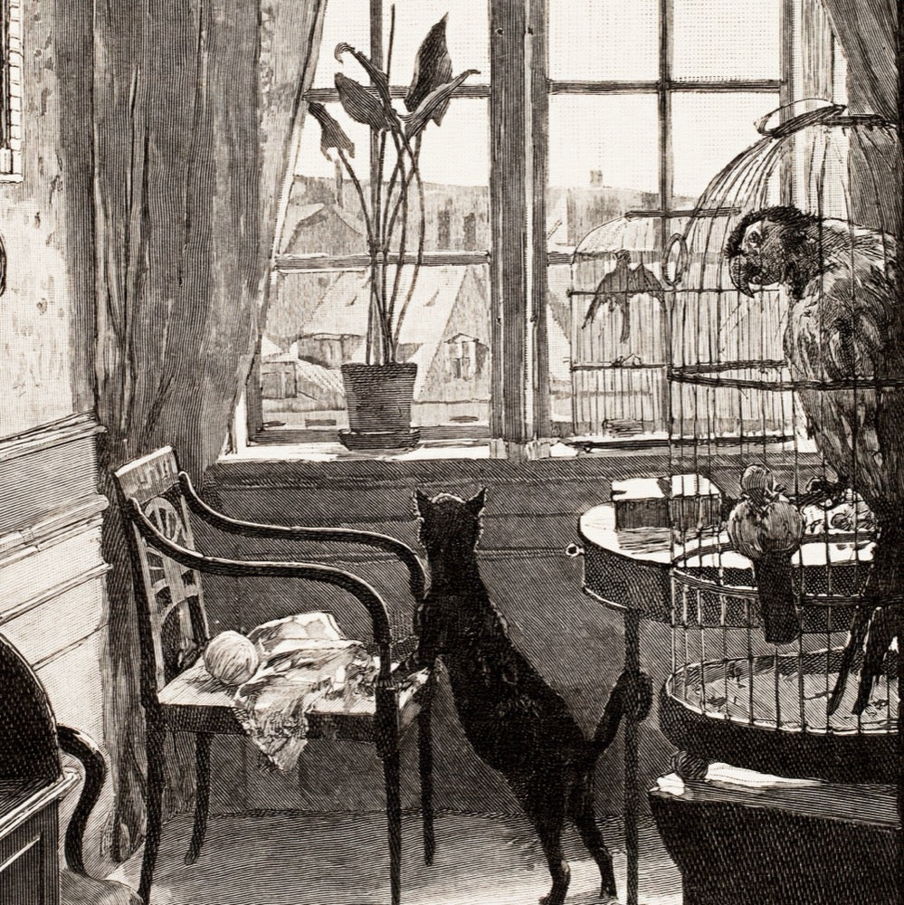 Victorian QuietudeA curious cat and watchful birds add life to a cozy, whimsical, richly detailed interior.