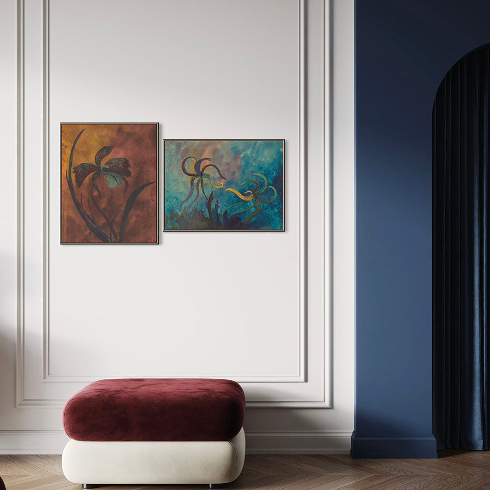 Created in the Netherlands during the height of the First World War, this work reflects the Symbolist and early Expressionist shift away from literal representation toward the "aura" of a subject. Janus de Winter was deeply influenced by the theories of Wassily Kandinsky, particularly the idea that color and form could directly translate human emotion and spiritual states. In 1917, de Winter was a central figure in the Utrecht avant-garde; his work from this period was championed by Theo van Doesburg, the founder of the De Stijl movement, who saw in de Winter’s "spirit-paintings" a revolutionary break from the physical world. The "Fighting Orchids" are often interpreted as metaphors for psychological struggle or the dual nature of beauty and aggression.