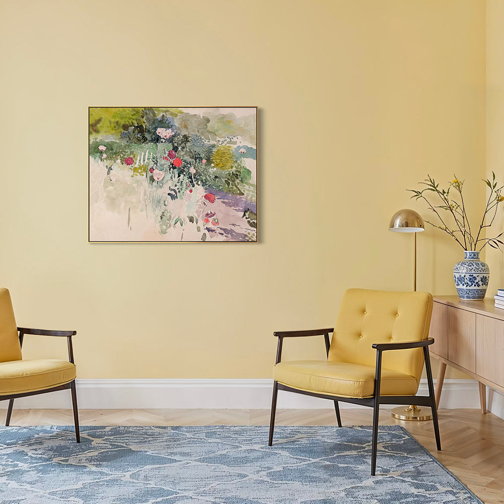 The compelling nature of this piece lies in its mastery of "empty space," or ma, a concept often associated with Eastern aesthetics but utilized here to define the airy, expansive mood of the European countryside. His brushwork is remarkably economic; the poppies are not labored over but instead suggested through bold washes of crimson and intentional pencil outlines. This restraint creates a sophisticated visual rhythm, where the eye travels from the dense, saturated floral clusters to the quiet, unpainted voids of the paper, mirroring the natural focus of the human eye.